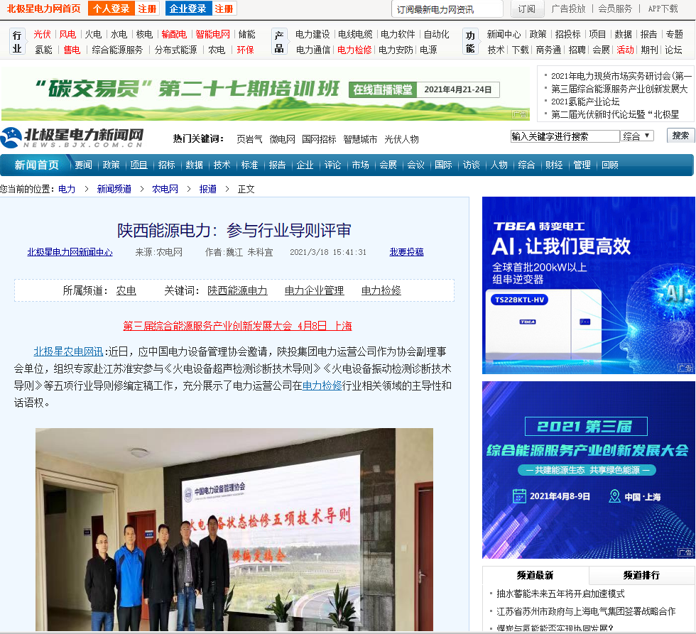 近日,應(yīng)中國電力設(shè)備管理協(xié)會邀請,陜投集團(tuán)電力運(yùn)營公司作為協(xié)會副理事會單位,組織專家赴江蘇淮安參與《火電設(shè)備超聲檢測診斷技術(shù)導(dǎo)則》《火電設(shè)備振動檢測診斷技術(shù)導(dǎo)則》等五項(xiàng)行業(yè)導(dǎo)則修編定稿工作,充分展示了電力運(yùn)營公司在電力檢修行業(yè)相關(guān)領(lǐng)域的主導(dǎo)性和話語權(quán)。