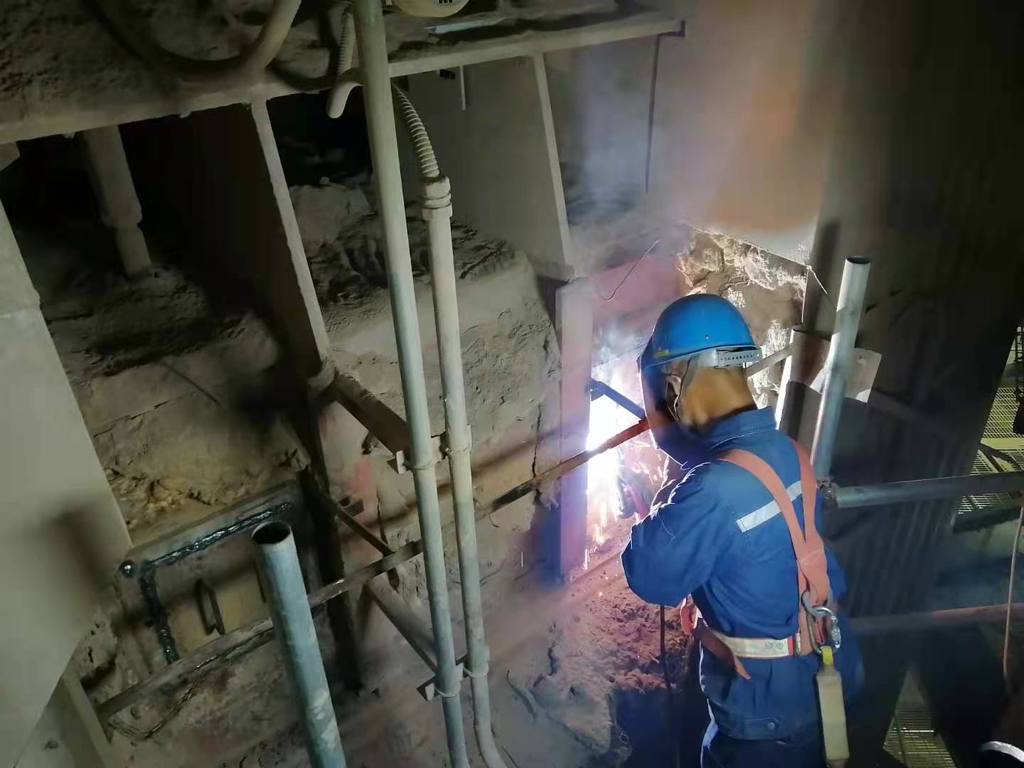 供熱抽汽快關(guān)調(diào)節(jié)閥的回裝關(guān)系著冬季向大用戶供熱問題,汽化水班高度重視,搶抓工期,加班加點(diǎn)完成任務(wù)。鍋爐班對(duì)長期吹掃減薄的10臺(tái)給煤機(jī)出口播煤風(fēng)管道進(jìn)行了更換,處理了空預(yù)器非停機(jī)不能處理的漏點(diǎn),對(duì)冷渣器內(nèi)脫落的導(dǎo)流板并行了補(bǔ)焊及檢查,同時(shí)還伴隨著2A鏈斗輸送機(jī)搶修及諸多作業(yè)多線進(jìn)行,本次臨停消缺計(jì)劃工期至8月19日結(jié)束。