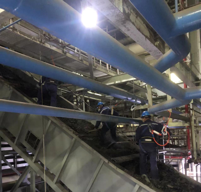 4月7日,吉木薩爾發(fā)電#1爐撈渣機(jī)堆積大量焦渣,嚴(yán)重威脅機(jī)組安全運行。吉木薩爾項目部立即組織調(diào)配其他班組成員進(jìn)行支援,歷經(jīng)3個小時奮戰(zhàn),用鐵锨、耙子等工具清理焦渣。現(xiàn)場雖“煙霧繚繞”,但清焦工作井然有序,經(jīng)過加班加點,第一時間將撈渣機(jī)內(nèi)堆積的焦渣全部清理至渣倉。通過此次應(yīng)急搶修,為1#機(jī)組安全穩(wěn)定運行提供了有力保障。