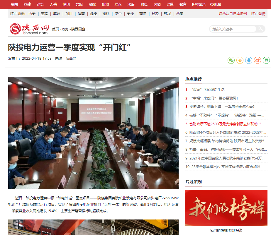 近日,陜投電力運營中標“陜電外送”重點項目——陜煤集團黃陵礦業(yè)發(fā)電有限公司店頭電廠2x660MW機組全廠維保及輔網(wǎng)運行項目,實現(xiàn)了集團外發(fā)電企業(yè)機組“運檢一體”的新突破。截止3月31日,電力運營一季度營業(yè)收入同比增長15.4%,主要生產(chǎn)經(jīng)營指標均超額完成。