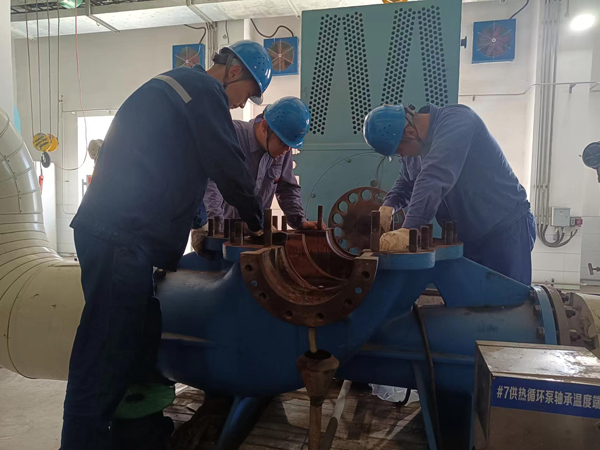 近期,渭河項(xiàng)目部利用機(jī)組大小修空檔期,對(duì)#1、#2供熱站共8臺(tái)供熱循環(huán)水泵及電機(jī)、開(kāi)關(guān)柜等設(shè)備進(jìn)行全面體檢、精準(zhǔn)檢修,重點(diǎn)對(duì)管道、閥門(mén)等進(jìn)行全覆蓋式檢查清掃,確保供熱系統(tǒng)“冬病夏治”各項(xiàng)工作落實(shí)到位。此次檢修涵蓋汽機(jī)、電氣、熱工專業(yè)標(biāo)準(zhǔn)項(xiàng)目共計(jì)125項(xiàng)。