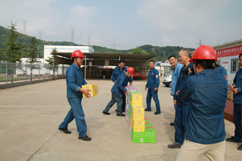 一份清涼,一份關(guān)懷。近日,商洛發(fā)電總工程師孫明、副總經(jīng)理湯培英到公司商洛項(xiàng)目部慰問高溫下堅(jiān)守生產(chǎn)一線的全體職工,對大家“戰(zhàn)高溫、斗酷暑、保安全、促生產(chǎn)”的奉獻(xiàn)精神給予高度贊揚(yáng),將防暑降溫飲品送到職工們手中,叮囑大家要注意防暑、保障自身安全健康,確保高溫季節(jié)安全生產(chǎn)工作平穩(wěn)有序開展。