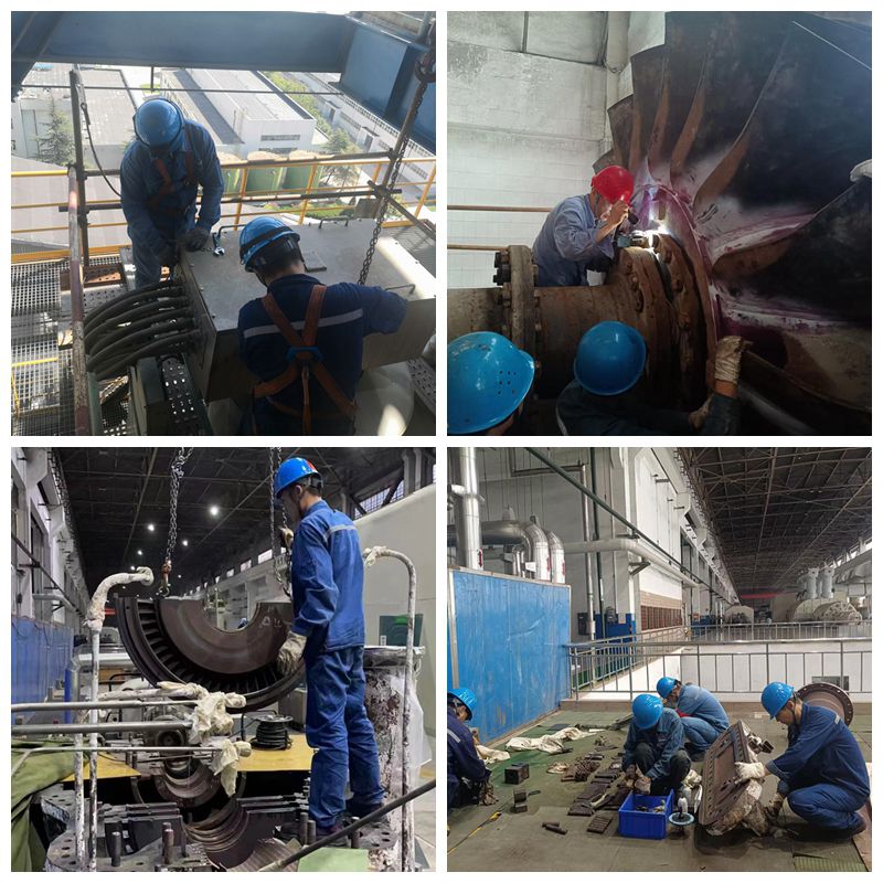 渭河發(fā)電#3機組C級檢修現(xiàn)場一片熱火朝天的景象,檢修人員主動放棄中秋假期參與到C修當(dāng)中。汽機房各種交叉作業(yè)同時進行,大錘的叮當(dāng)聲、行車起吊的哨子聲、銅棒的敲擊聲此起彼伏。乙小機大修的清掃、測量工作有序展開,檢修人員對小機轉(zhuǎn)子和葉輪進行清掃,細心地粘貼白色膠布用來測量汽封間隙,確保檢修質(zhì)量精益求精。