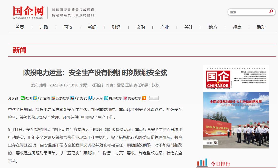 中秋節(jié)日期間,電力運(yùn)營緊繃安全生產(chǎn)弦,加強(qiáng)重要部位、重點(diǎn)環(huán)節(jié)的安全風(fēng)險(xiǎn)管控,加強(qiáng)安全檢查、等級(jí)檢修現(xiàn)場(chǎng)安全管理,開展保供電相關(guān)安全生產(chǎn)工作。