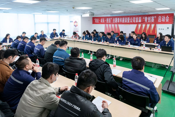 與會人員觀看了《同心筑夢 強企有我》微視頻,回顧了團委成立以來的工作開展情況和青年員工的成長進步。團委書記曹林宣讀了《關(guān)于開展公司首屆“青創(chuàng)賽”的通知》,對大賽機制和激勵獎勵作了重點講解。人力資源部主任魏鐸對公司青年人才培養(yǎng)政策進行宣講,幫助青年厘清職業(yè)規(guī)劃。