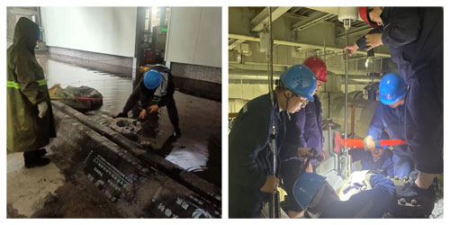 黃陵店頭電廠#1機組汽泵再循環(huán)管道止回閥前管道法蘭墊子泄漏造成廠房內(nèi)漏水,影響機組安全運行。接到消息后,項目部值班人員立即奔赴現(xiàn)場清理#6皮帶積水,保證輸煤設(shè)備安全。經(jīng)全體人員連續(xù)作業(yè)5小時,圓滿完成防水、疏導(dǎo)漏水、清理積水任務(wù),保證了機組安全運行,并在機組具備更換止回閥法蘭墊子條件后再次投入搶修工作。