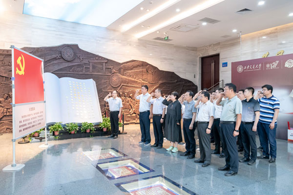 “我志愿加入中國共產(chǎn)黨,擁護(hù)黨的綱領(lǐng),遵守黨的章程……”鏗鏘有力的宣誓聲響起時,每個人的內(nèi)心都無比激動。在西遷博物館,全體黨員舉起右手面向黨旗莊嚴(yán)宣誓,重溫入黨誓詞,牢記共產(chǎn)黨員的政治責(zé)任和使命擔(dān)當(dāng)。