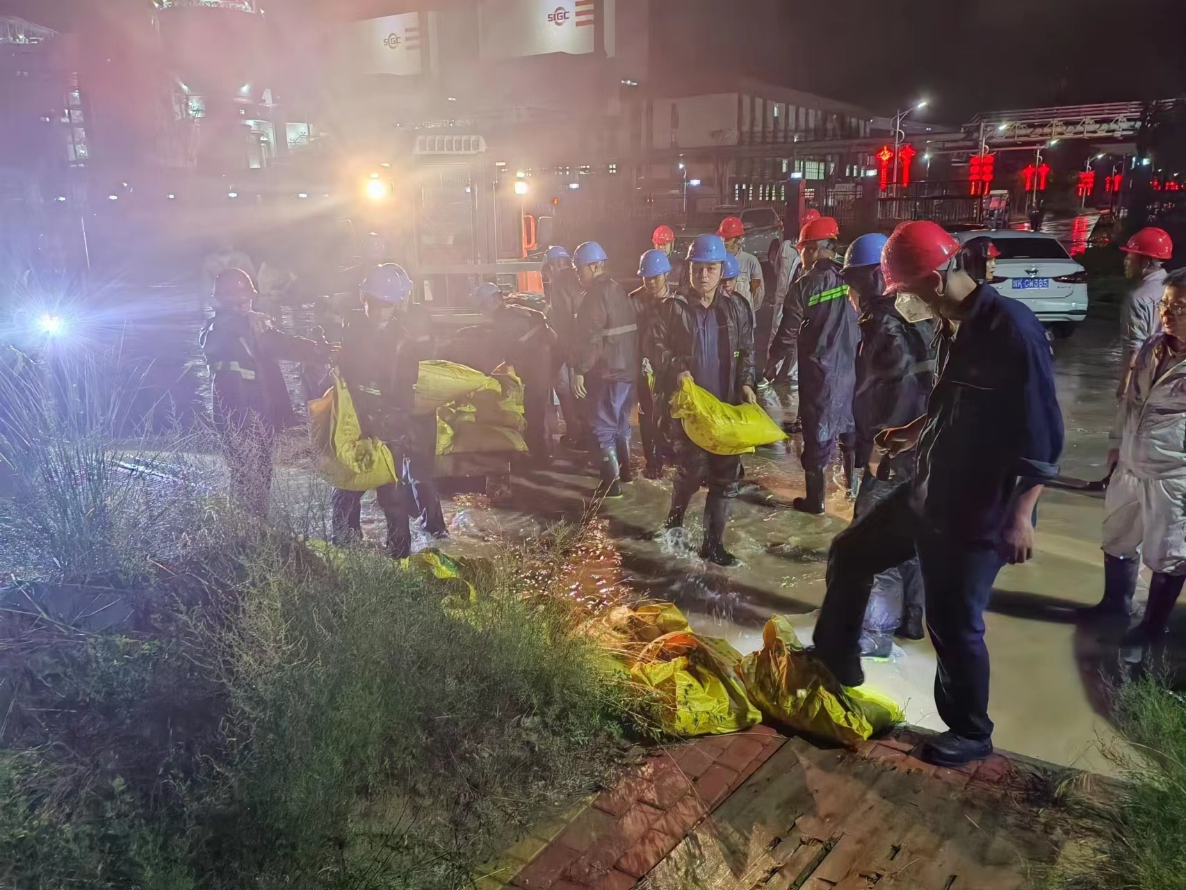 下午18時(shí)許,狂風(fēng)大作,天空下起小雨。值班和管理人員立即開(kāi)始巡查。21:30,大雨滂沱,防汛應(yīng)急人員全員進(jìn)入現(xiàn)場(chǎng)搶險(xiǎn)。此時(shí),檢修樓前路面積水成河,雨水已沒(méi)過(guò)了腳面。由于雨量過(guò)大,全廠的雨水都匯聚到了西門(mén)外,排水渠的積水也越來(lái)越深,甚至有倒灌回廠區(qū)的情況發(fā)生。搶險(xiǎn)人員立即清理排水渠內(nèi)雜物,確保排水通暢。搬運(yùn)沙袋圍檔堵住西門(mén)通道,形成防洪堤壩,防止雨水倒灌。在項(xiàng)目部有序組織協(xié)調(diào)下,汛情快速得到控制。