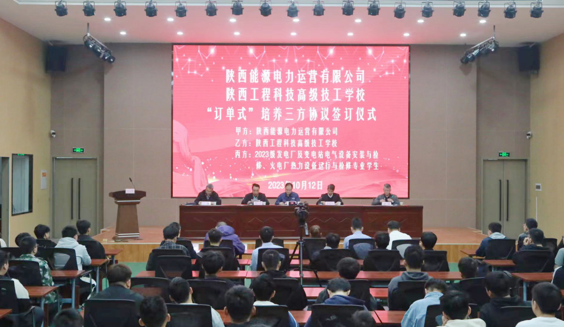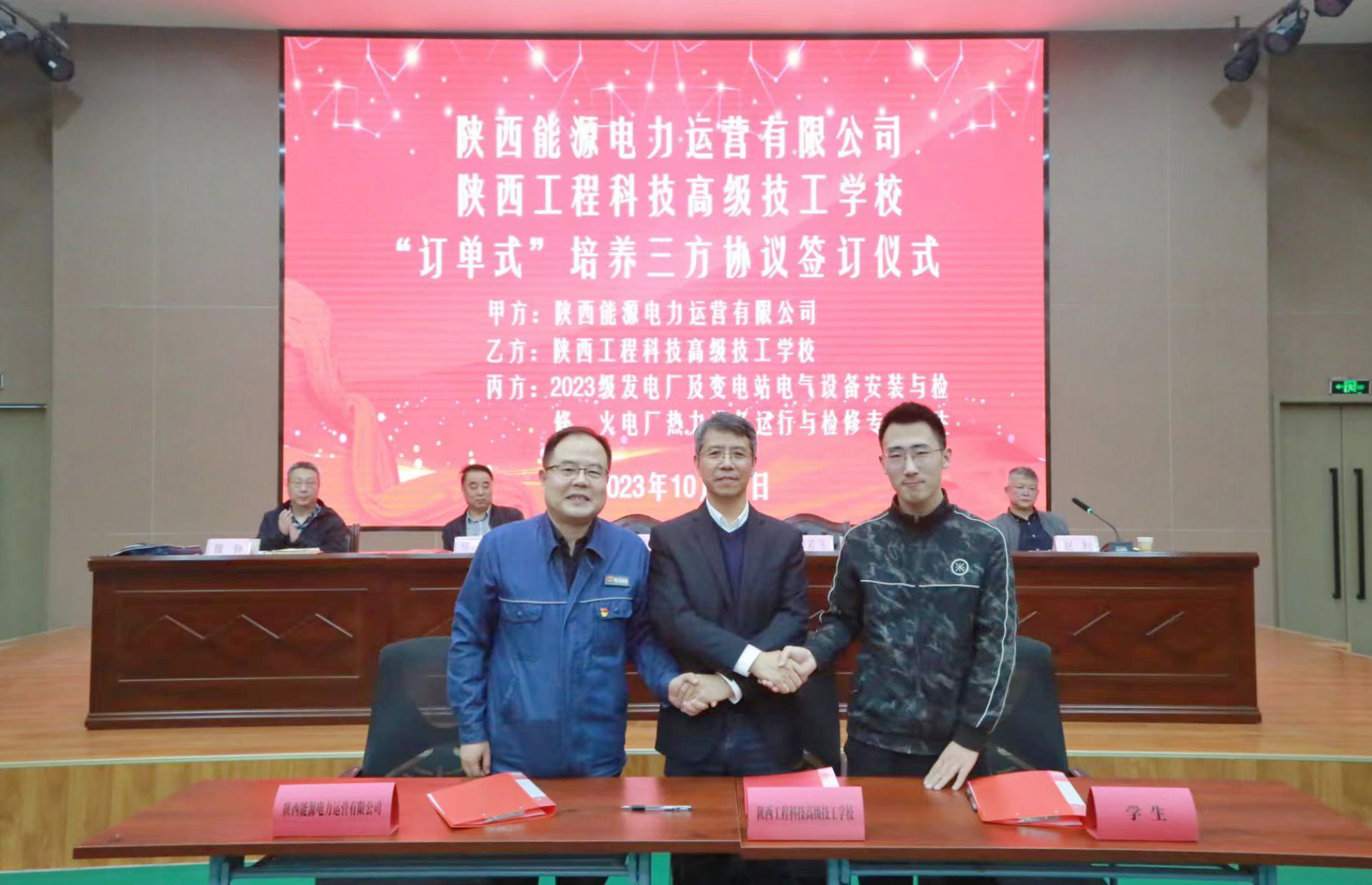 10月12日,公司與陜西工程高級技工學校舉辦電力運營《“訂單式培養(yǎng)”三方協(xié)議》簽字儀式。公司黨委書記、董事長毛冬紅,陜西工程高級技工學校黨委負責人、校長李若飛及教職工代表、學生共計120余人參加,儀式由陜西工程高級技工學校副校長趙利主持。
