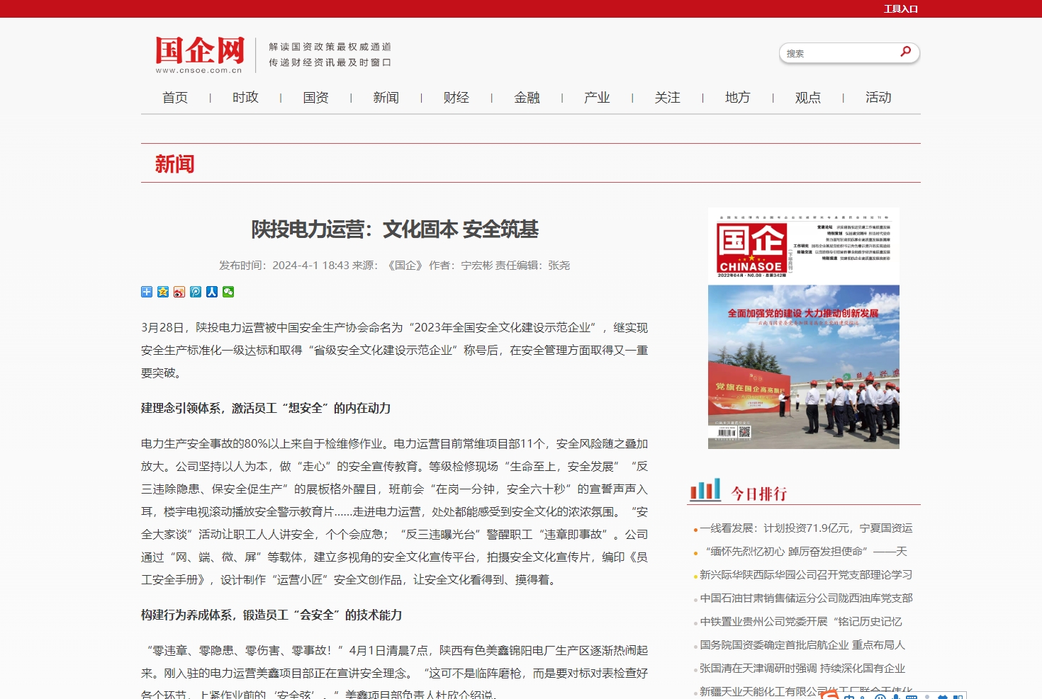 3月28日,陜投電力運(yùn)營被中國安全生產(chǎn)協(xié)會(huì)命名為“2023年全國安全文化建設(shè)示范企業(yè)”,繼實(shí)現(xiàn)安全生產(chǎn)標(biāo)準(zhǔn)化一級(jí)達(dá)標(biāo)和取得“省級(jí)安全文化建設(shè)示范企業(yè)”稱號(hào)后,在安全管理方面取得又一重要突破。