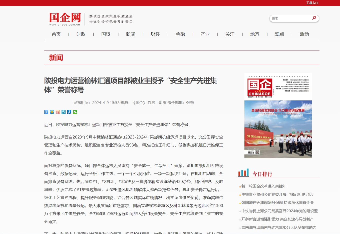近日,陜投電力運(yùn)營榆林匯通項(xiàng)目部被業(yè)主方授予“安全生產(chǎn)先進(jìn)集體”榮譽(yù)稱號。