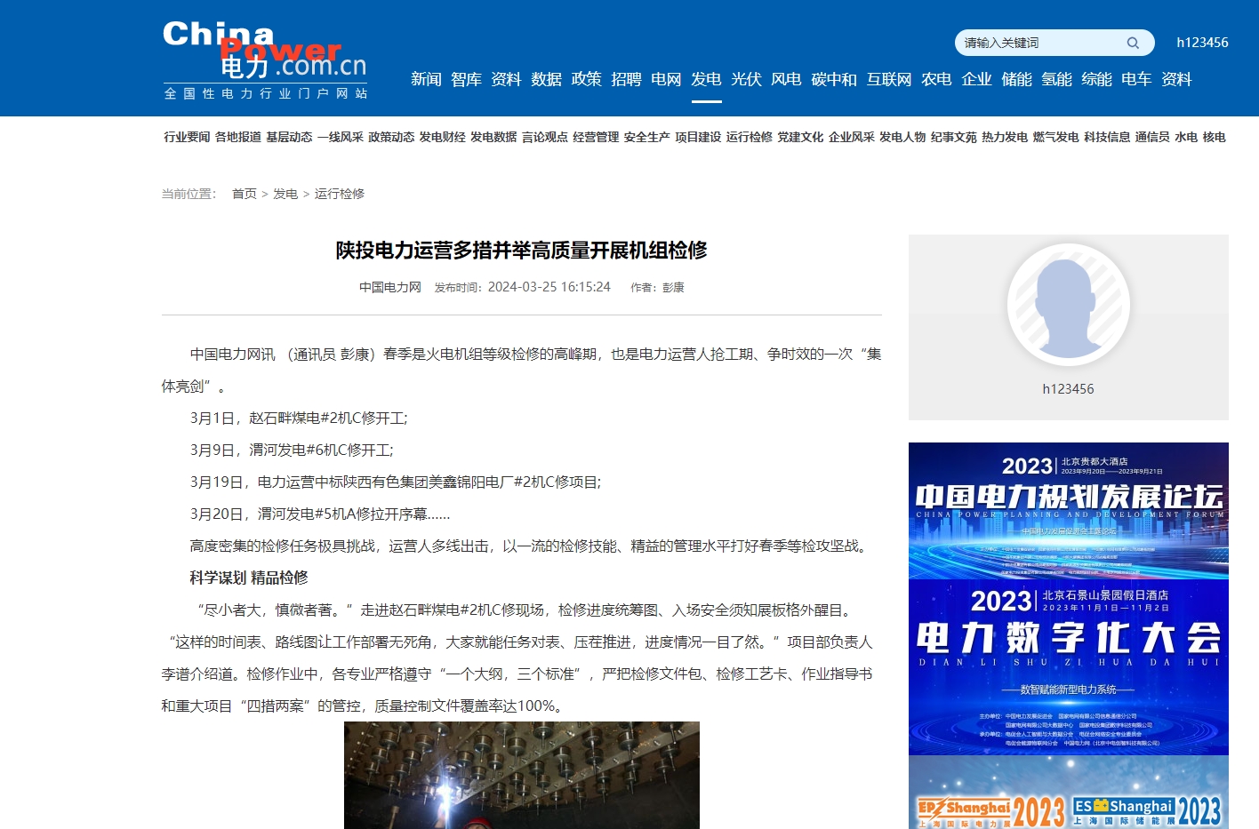 3月9日,渭河發(fā)電#6機(jī)C修開工;