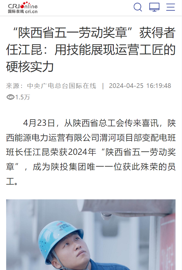 4月23日,從陜西省總工會傳來喜訊,陜西能源電力運營有限公司渭河項目部變配電班班長任江昆榮獲2024年“陜西省五一勞動獎?wù)隆?,成為陜投集團唯一一位獲此殊榮的員工。