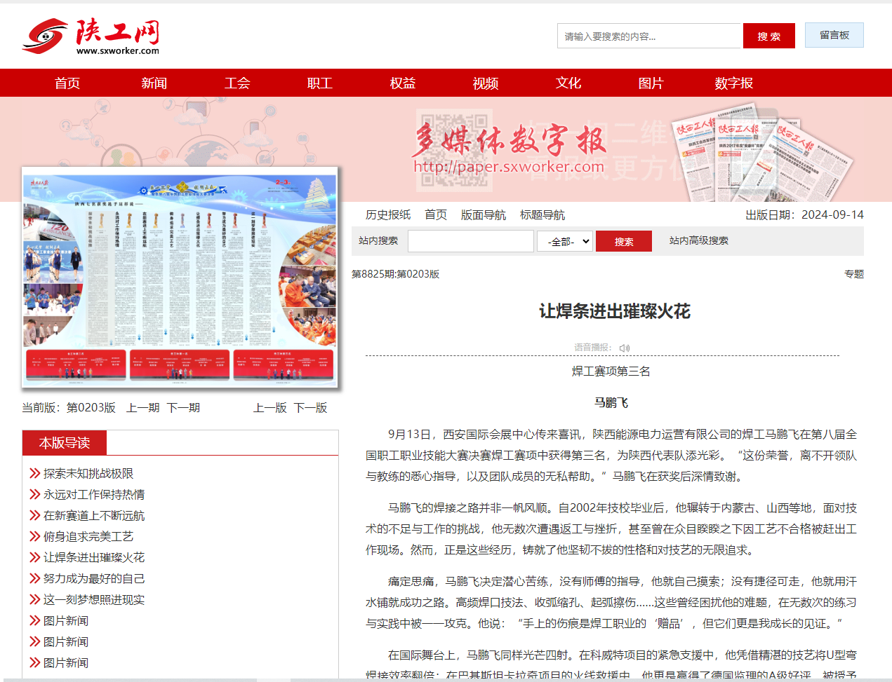 9月13日,西安國際會展中心傳來喜訊,公司職工馬鵬飛在第八屆全國職工職業(yè)技能大賽決賽焊工賽項中獲得第三名,為陜西代表隊添光彩。“這份榮譽,離不開領(lǐng)隊與教練的悉心指導,以及團隊成員的無私幫助。”馬鵬飛在獲獎后深情致謝。