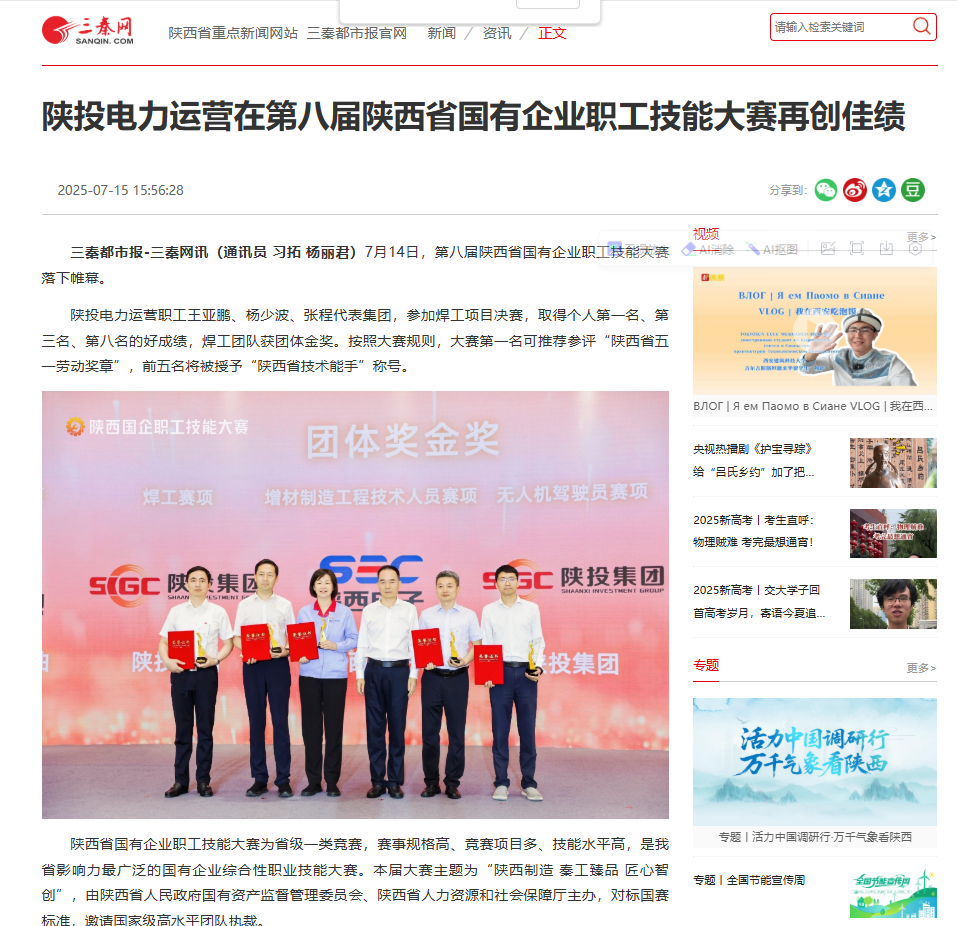 7月14日,第八屆陜西省國有企業(yè)職工技能大賽落下帷幕。陜投電力運營職工王亞鵬、楊少波、張程代表集團,參加焊工項目決賽,取得個人第一名、第三名、第八名的好成績,焊工團隊獲團體金獎。按照大賽規(guī)則,大賽第一名可推薦參評“陜西省五一勞動獎?wù)隆?,前五名將被授予“陜西省技術(shù)能手”稱號。