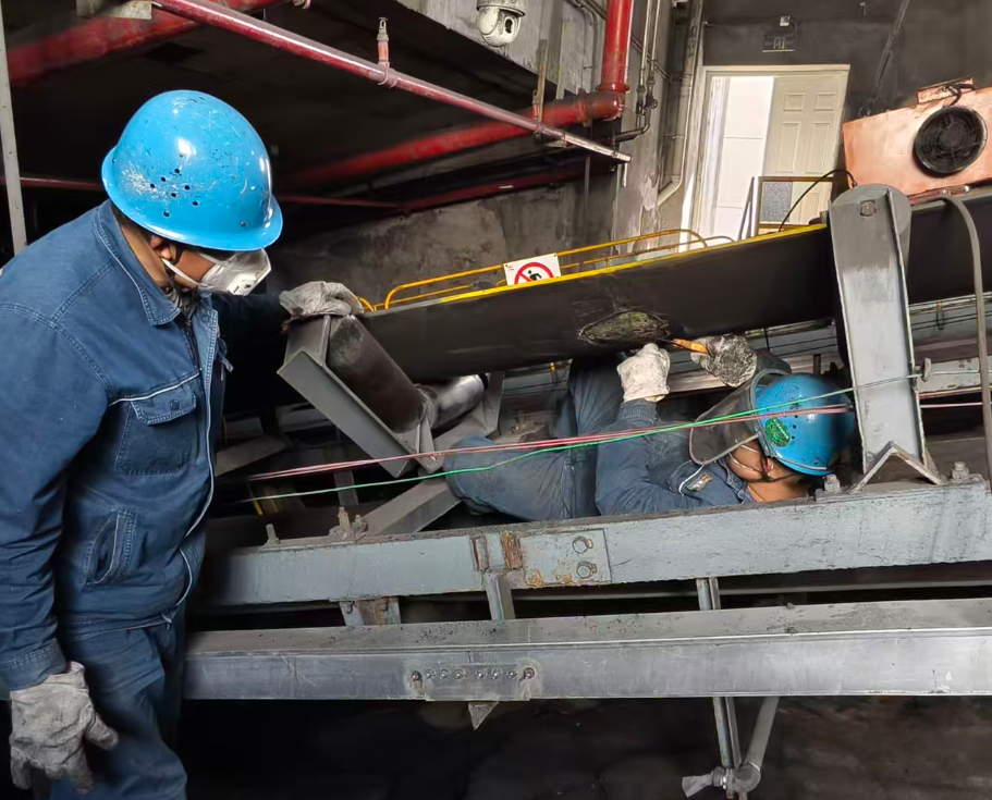 在不足半米高的皮帶輸送架下,輸煤檢修班張保亮半躺在地,蜷縮身體,在彌漫的粉塵中仔細(xì)排查每一個(gè)連接點(diǎn)和磨損處。他目光如炬,緊盯著每個(gè)細(xì)節(jié),這個(gè)看似“躺平”的姿勢(shì),恰恰是為了讓這條生產(chǎn)的“咽喉”要道能夠穩(wěn)穩(wěn)地順暢運(yùn)行。