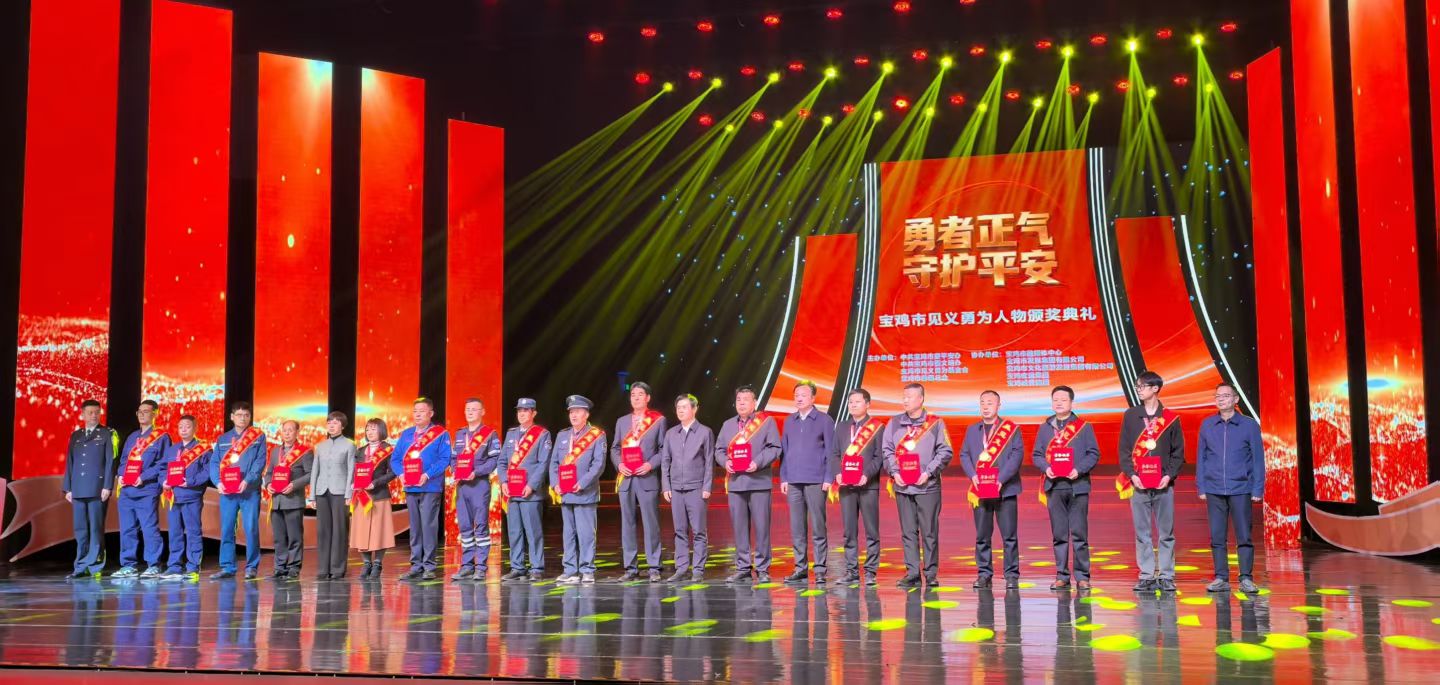 11月10日,寶雞市首屆“勇者正氣 守護(hù)平安”見義勇為人物頒獎典禮隆重舉行,公司麟北項(xiàng)目部任永平、任偉眾、宋小寶、馬寶峰憑借危急時刻挺身而出的英勇行為,榮獲“寶雞市見義勇為人物”稱號,成為現(xiàn)場備受關(guān)注的平民英雄。