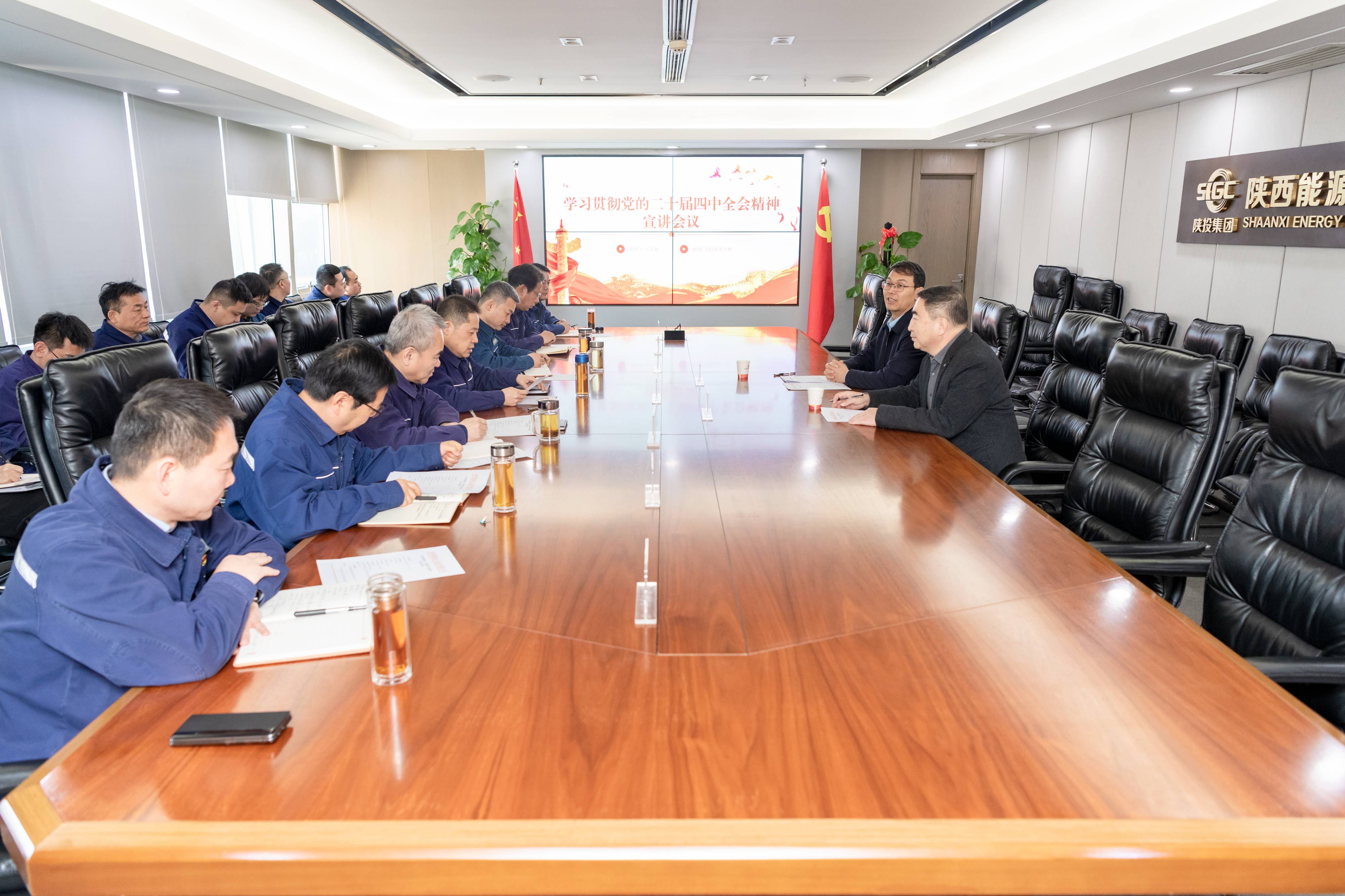 1月5日,陜西能源黨委副書記張正峰到公司宣講黨的二十屆四中全會精神,并對公司生產經營工作進行調研指導。陜西能源黨委工作部主任安景輝參加。公司黨委書記、董事長張小鋒主持會議。