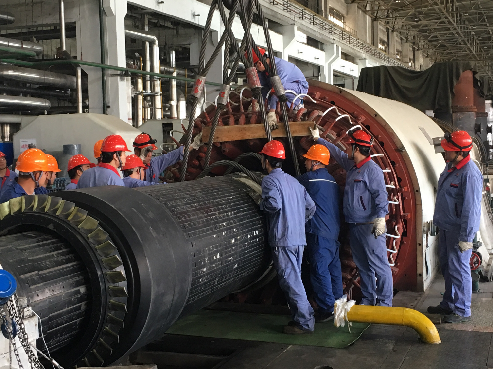 13點(diǎn)30分,在起重工精準(zhǔn)指揮下,全體工作人員通力合作,2.43米長、57噸重的發(fā)電機(jī)轉(zhuǎn)子順利從發(fā)電機(jī)本體完全抽出。至此,#4機(jī)等級檢修解體工作基本結(jié)束,所有后續(xù)檢修工作隨即全面展開。