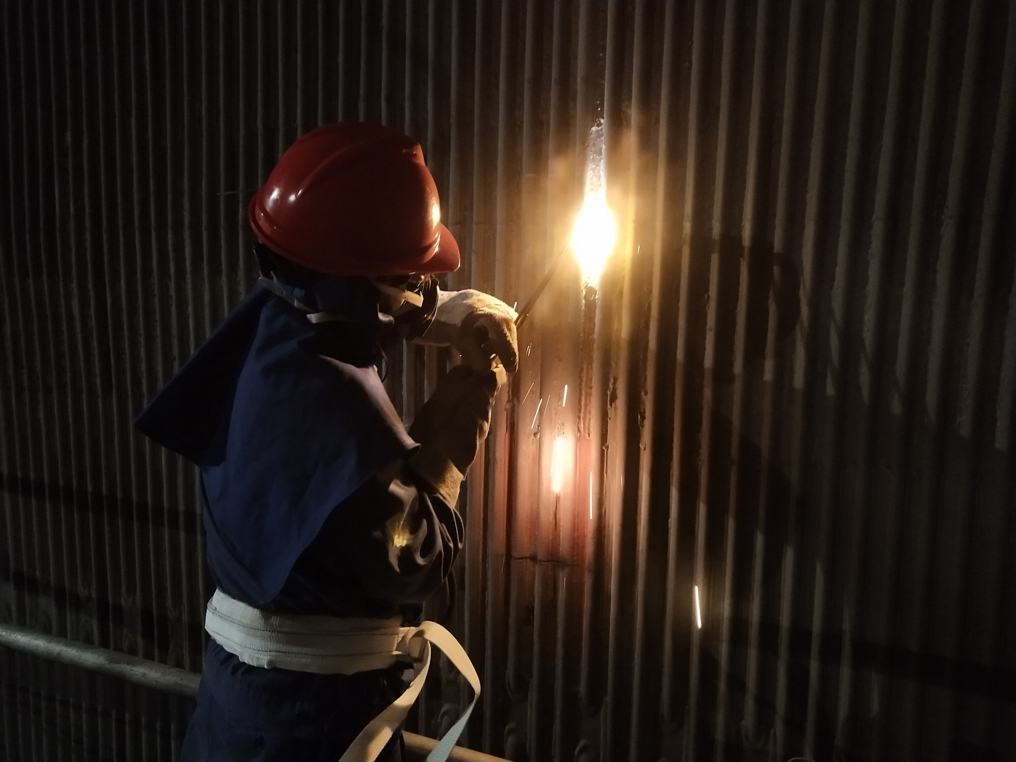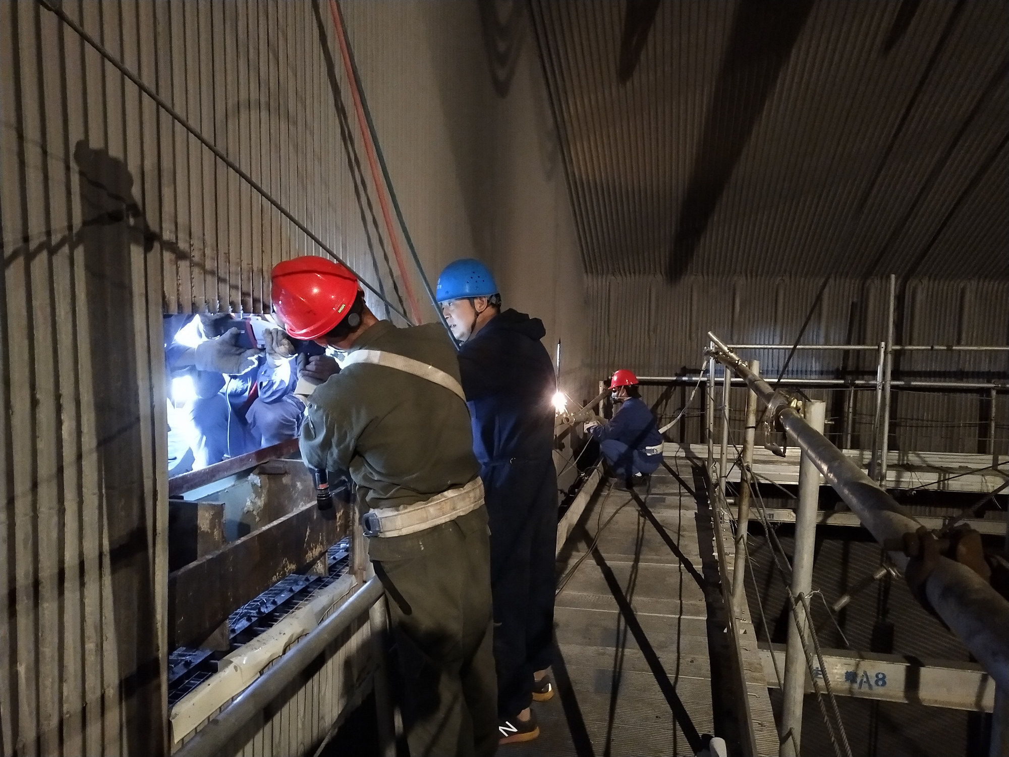 6月7日端午節(jié),在萬家團(tuán)聚的日子,項目部鍋爐班開始了#2爐水冷壁66根管道更換的前期準(zhǔn)備工作。爐膛內(nèi),煤粉、保溫渣,夾雜著鐵屑飛揚(yáng)。工作人員站在距地面56米高的腳手架上切除水冷壁管、制水冷壁管坡口、磨鰭片、清除管壁內(nèi)外銹,各小組有條不紊地開展工作。至6月9日收假前,水冷壁管焊接前準(zhǔn)備工作已全部就緒,為節(jié)后焊接工作的順利開展,創(chuàng)造了條件。 (趙 濤 王武軍)