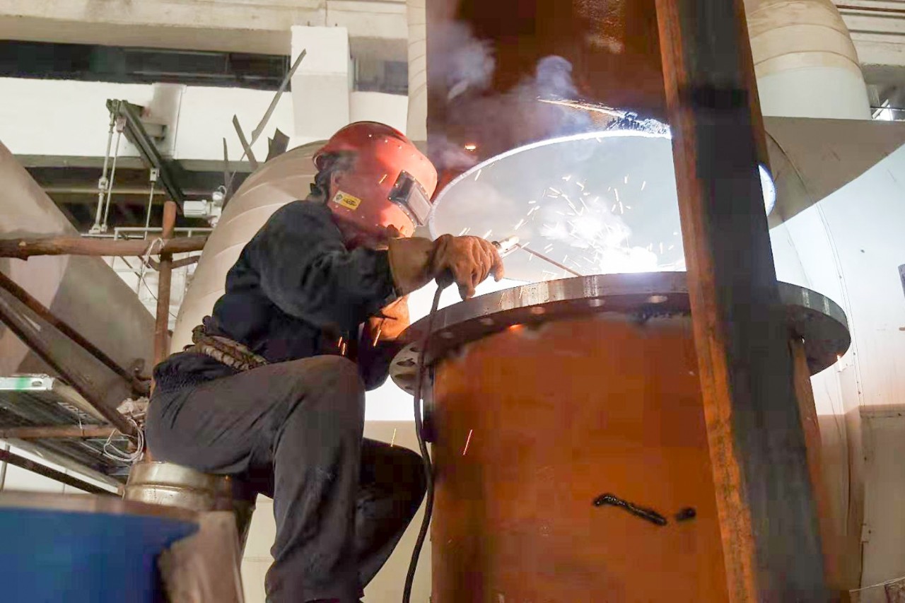 尖峰加熱器水側(cè)加裝出、入口門是此次大修的重點(diǎn)工作,需要在外徑920MM的管道上進(jìn)行斷口、制口,再將超過(guò)半噸重的閥門安裝到位,多工種交叉作業(yè),對(duì)安全和技術(shù)要求極高,工作難度極大。為此,項(xiàng)目部成立專門小組負(fù)責(zé)現(xiàn)場(chǎng)技術(shù)、安全工作,以便隨時(shí)掌握施工進(jìn)展,及時(shí)處理各種應(yīng)急情況。目前,此項(xiàng)工作正在緊張有序進(jìn)行當(dāng)中。