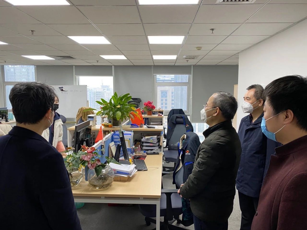 檢查組一行先后來(lái)到公司大廳測(cè)溫點(diǎn)、防疫物資儲(chǔ)備間、辦公大樓等重點(diǎn)消殺區(qū)域,詳細(xì)了解人員登記、防疫物資儲(chǔ)備及專項(xiàng)應(yīng)急預(yù)案等疫情防控工作開(kāi)展情況。