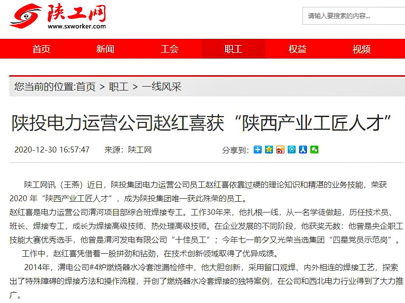 近日,陜投集團電力運營公司員工趙紅喜依靠過硬的理論知識和精湛的業(yè)務(wù)技能,榮獲 2020 年“陜西產(chǎn)業(yè)工匠人才”,成為陜投集團唯一獲此殊榮的員工。